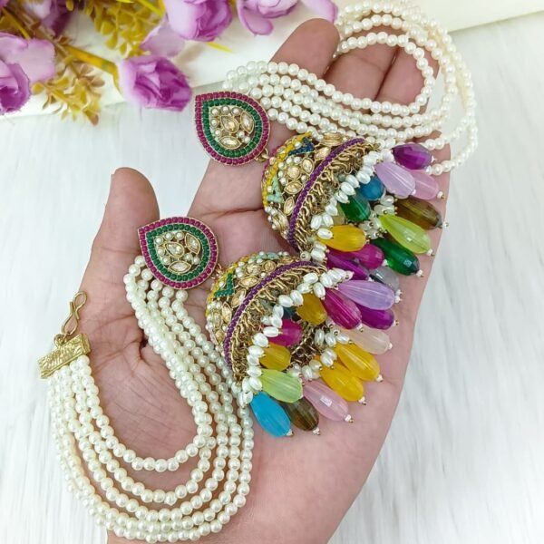 Title: Multicolor Jhumka Earrings with Pearl Sahara (Ear Chains)