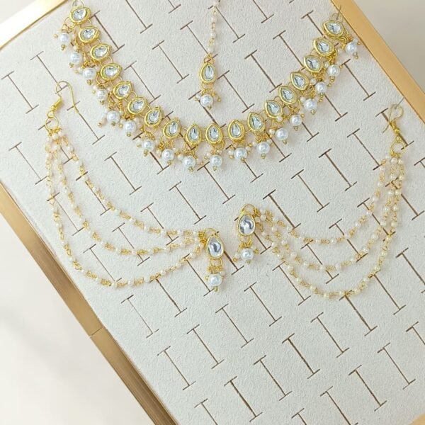 Title: White Kundan Polki Pearl Choker Necklace Set