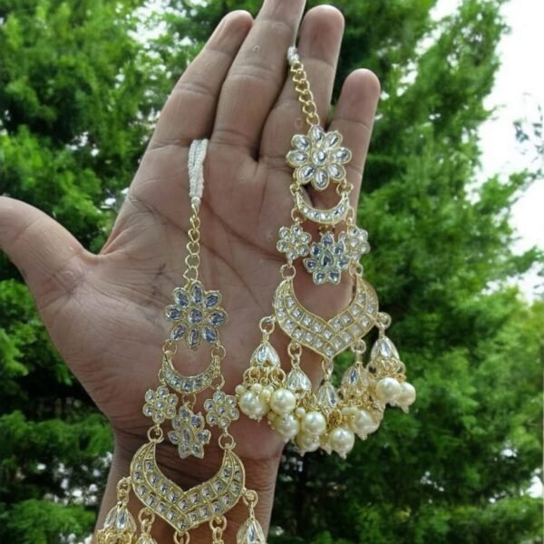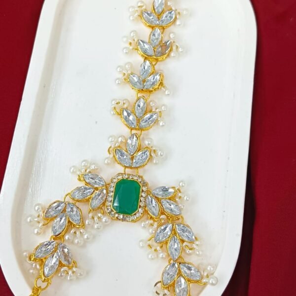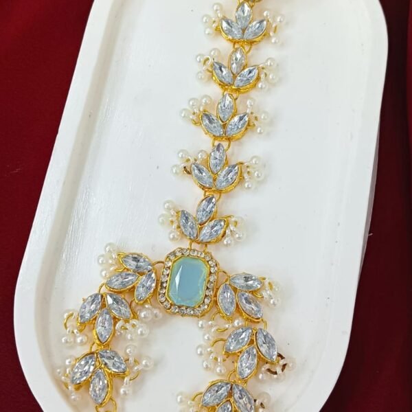 Teardrop Zircon Polki Necklace Set with Maang Tikka