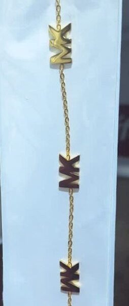 এই মার্জিত ব্রেসলেটটি স্টেইনলেস স্টিলের তৈরি, গোল্ড টোন ফিনিশ সহ। চেইনের মাঝে তিনটি "MK" ইনিশিয়াল লেটার সুন্দরভাবে সাজানো, যা একটি পার্সোনালাইজড ও স্টাইলিশ লুক দেয়। হালকা ও আরামদায়ক পরার জন্য উপযোগী, দৈনন্দিন ব্যবহার কিংবা বিশেষ উপহার হিসেবে পারফেক্ট। টেকসই উপাদানের কারণে দীর্ঘদিনের জন্য রঙ ও চকচকে অটুট থাকবে!