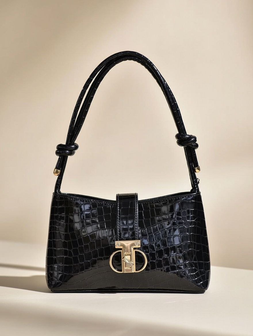 red crocodile pattern women’s shoulder bag with a bow accent.