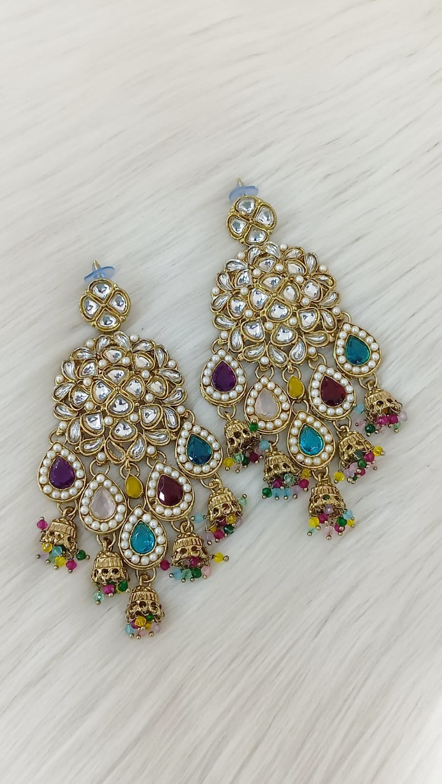 টাইটেল: মাল্টিকালার কুন্দন পাচ্চি ঝুমকা (নবরত্ন স্টোন সহ)