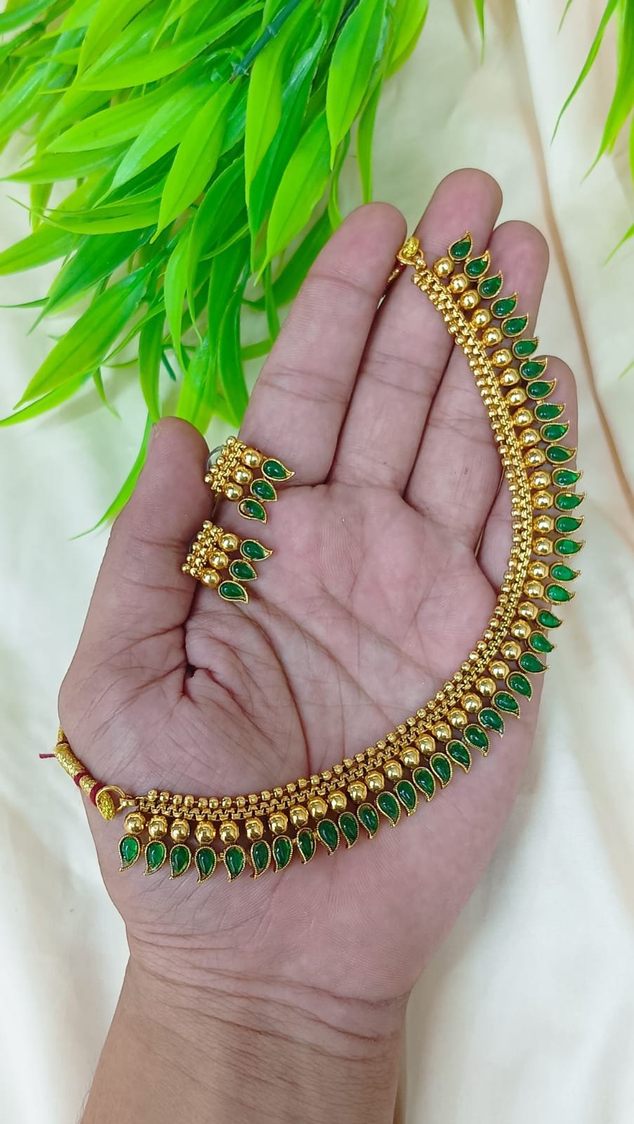 appears to be a traditional South Indian style gold-plated temple jewelry se