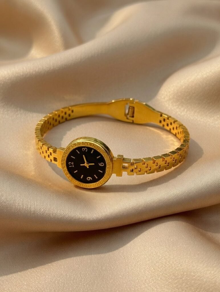 gold-colored watch bracelet