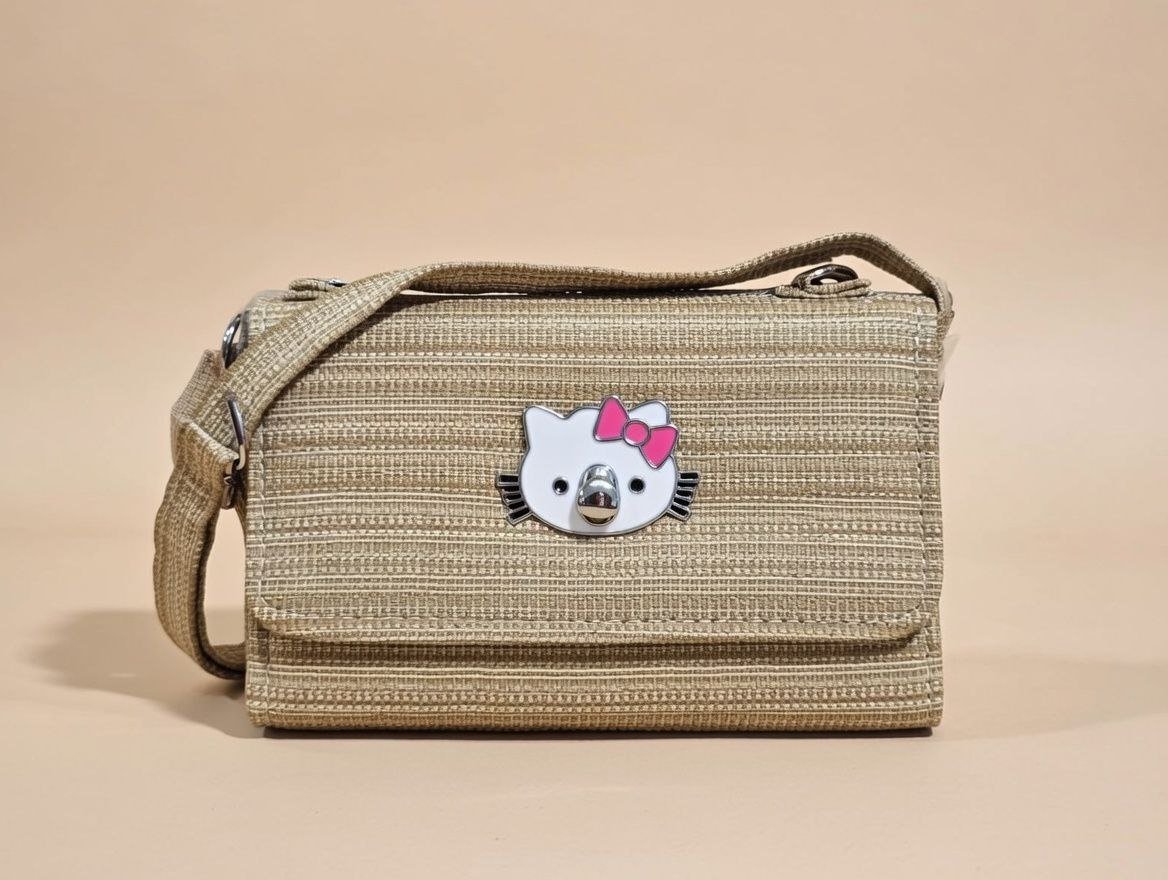 MINISO Sanrio Design plush crossbody bag featuring the Hello Kitty character.