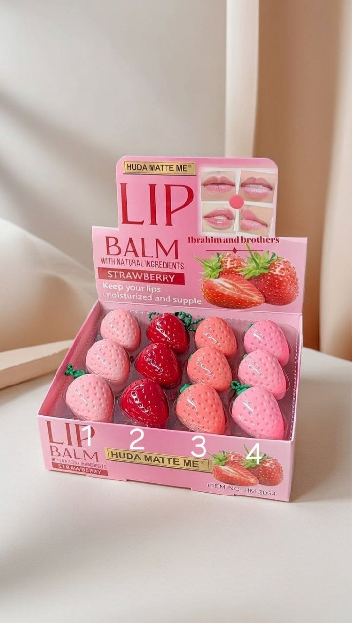 Home Cosmetics Huda Matte Me Strawberry Lip Balms in strawberry-shaped containers.1p