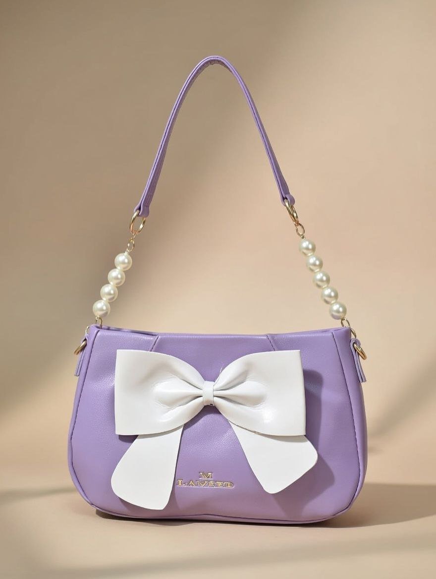 Lamsed Lilac Bow Pearl Chain Shoulder Bag
