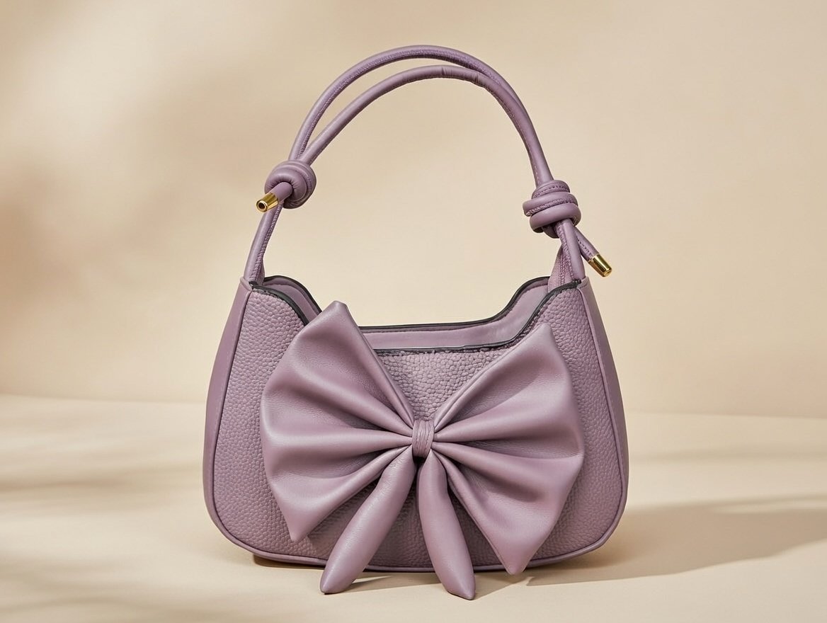 lavender faux leather mini bow shoulder bag, also available as a crossbody bag with a detachable strap.