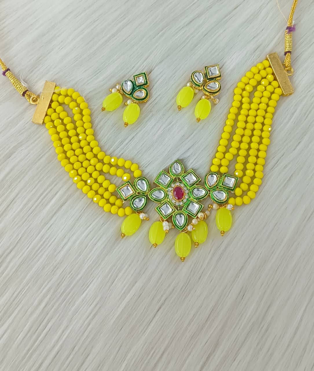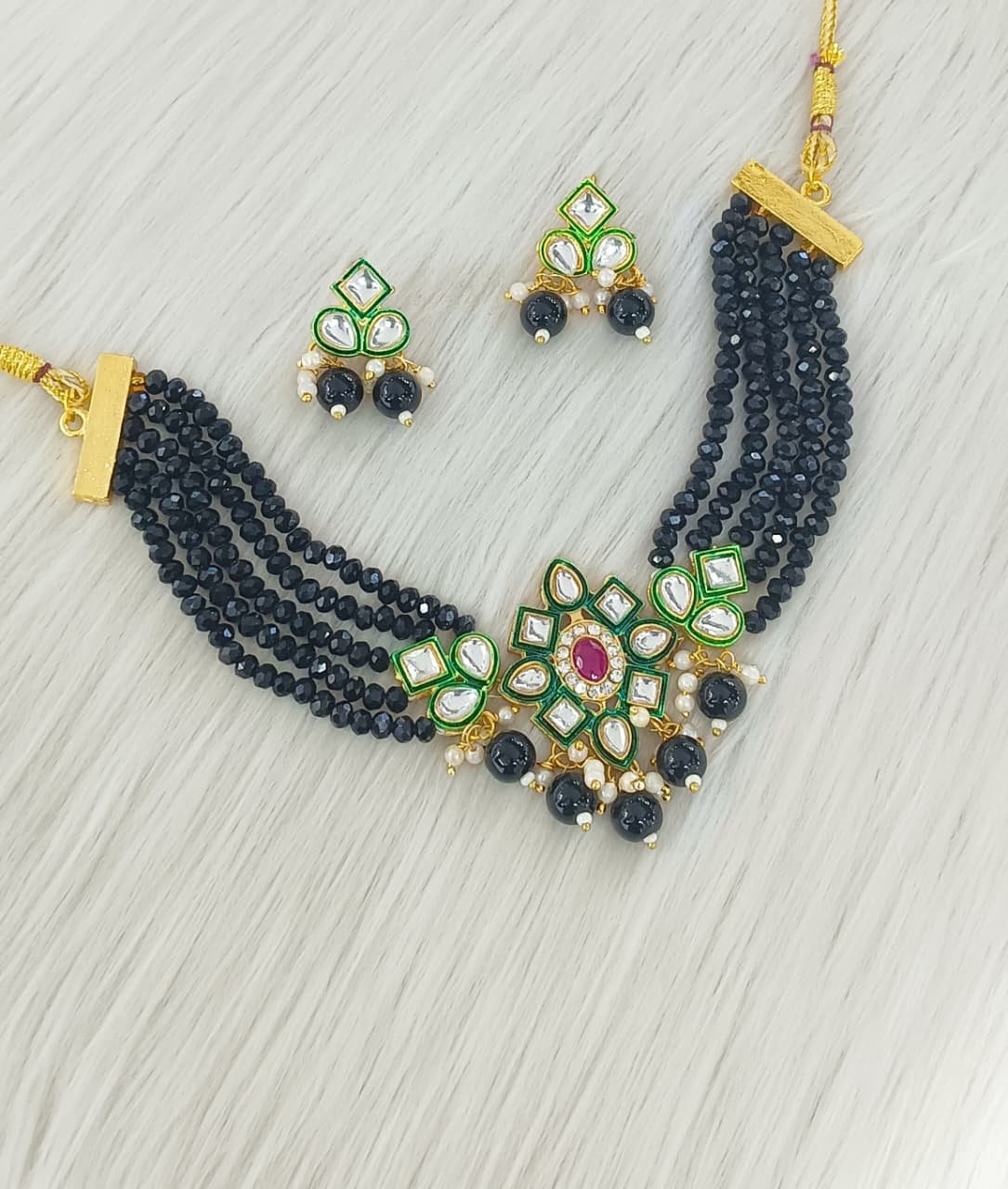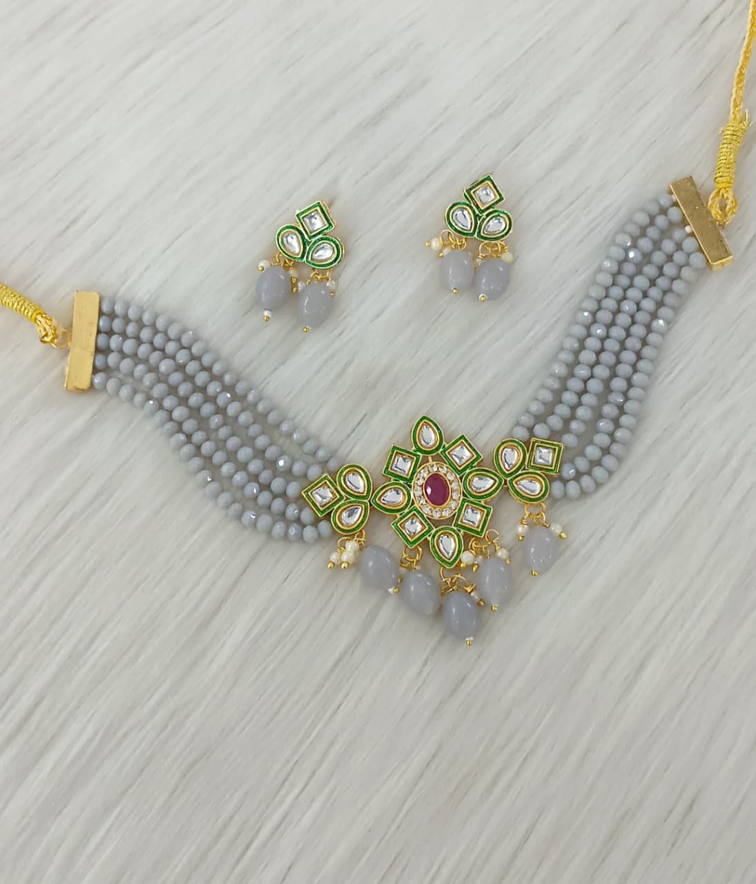 Title: Red Crystal Beaded Choker Set with Kundan Pendant