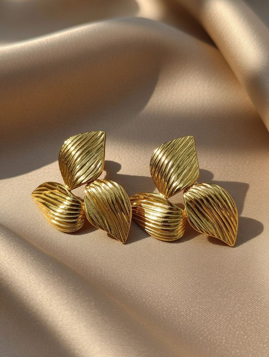 Home Stainless Steel Necklace ribbed gold-tone petals arranged