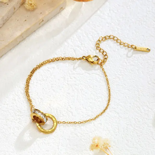 Roman numeral double ring full diamond bracelet | stainless steel and color