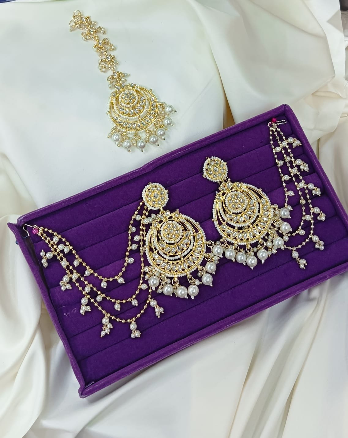Royal Kundan Chandbali Earring & Tikka Set with Pearl Sahare