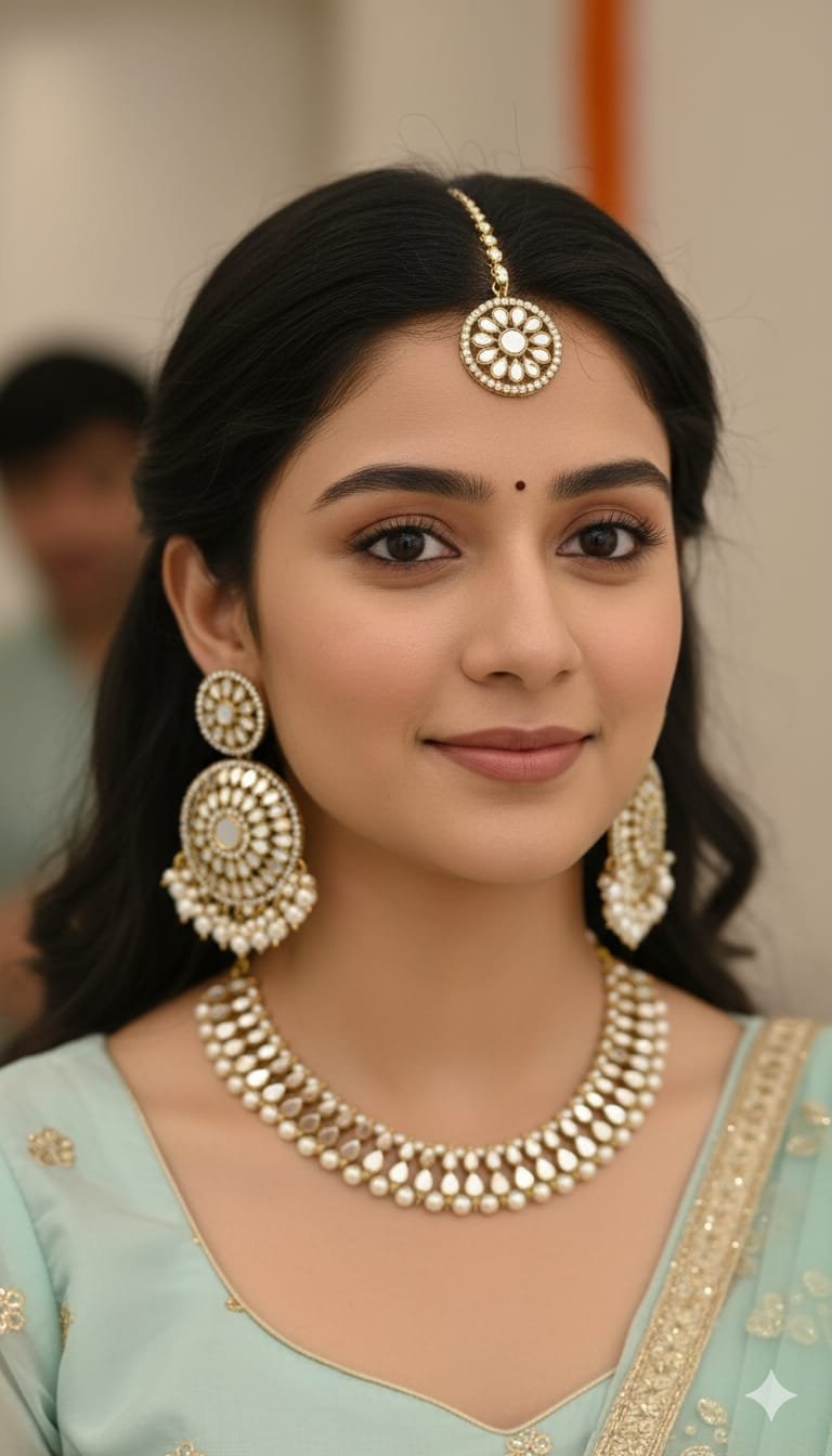- A multi-colored choker necklace, often featuring materials like brass, kundan, and stones.