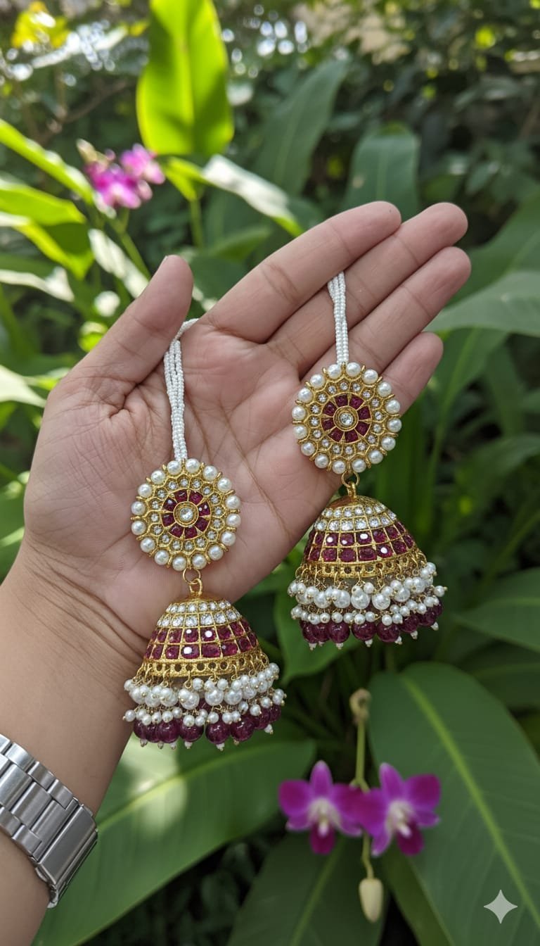 টাইটেল: মাল্টিকালার কুন্দন পাচ্চি ঝুমকা (নবরত্ন স্টোন সহ)